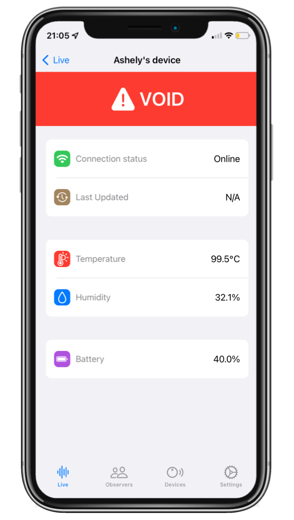 CareChanger monitors a user’s local environment for changes in humidity and temperature every 30 seconds. When a user experiences a void event, the device sends a notification to caregiver’s mobile phone or tablet.
